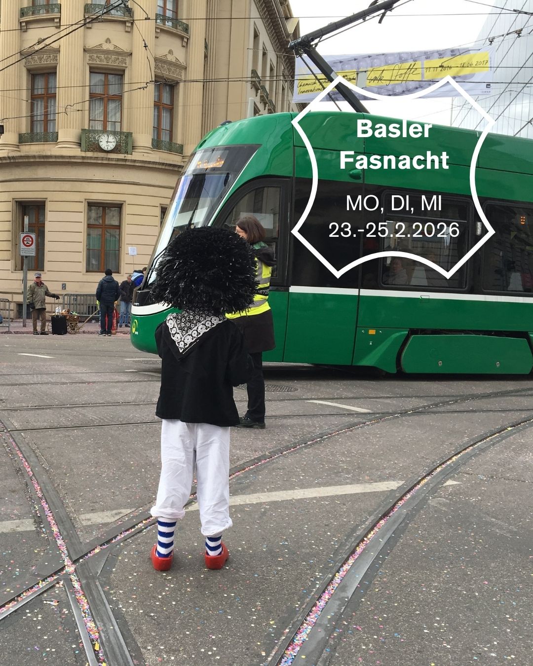 Die BVB wünscht allen Fasnächtler*innen und Besucher*innen e scheeni Fasnacht! Alle Infos zum Fahrplan während der «drey scheenschte Dääg» sind in unserem Fasnachts-Flyer auf bvb.ch aufgeführt.